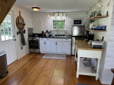 The kitchen has been remodeled with a new stove/oven and new refrigerator and includes glassware, silverware, pots and pans, spices, and more! Everything you need for snacking or a gourmet meal!