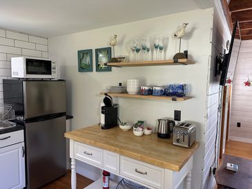 In your kitchen, you’ll enjoy a Keurig coffee station with assorted coffees & teas, plus an electric hot water kettle, and toaster – all helpful for making that perfect breakfast!