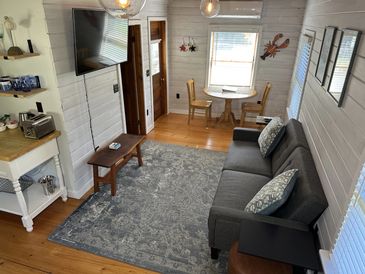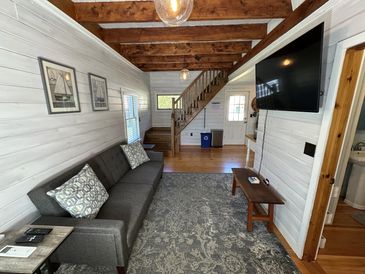 On the 1st floor, you have a large ductless mini-split for instant A/C & heat. The cottage is equipped with a 50" Smart 4K HDTV along with fast Wi-Fi (1 Gbps).
