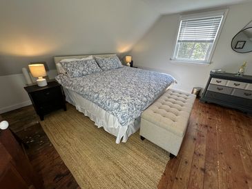 The bedroom looks over the protected Rachel Carson marshland with views that extend to the Atlantic Ocean. The bedroom is equipped with a comfortable king-sized memory foam mattress bed with the soothing sounds of the ocean to help you sleep the night away!