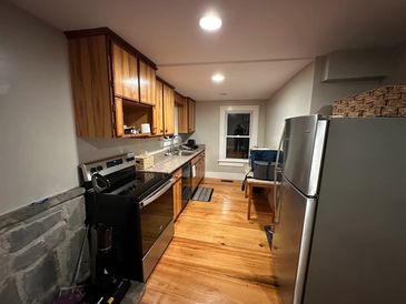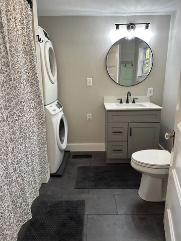 There's a full bath on the 1st floor with shower/tub and a full-size washer/dryer!