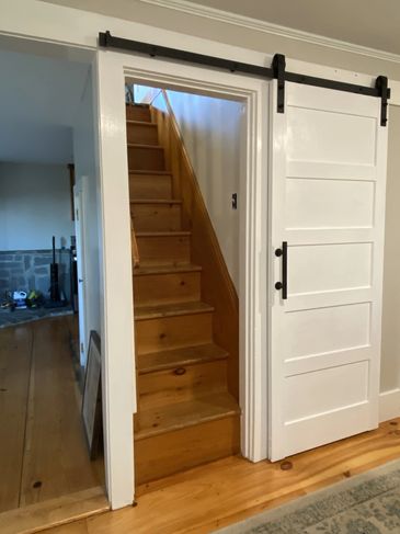 Behind a barn door in the dining room is a sneaky way to get up to the 2nd floor bunk room! (Don't worry, you can get upstairs using the larger front staircase in the front living room!)